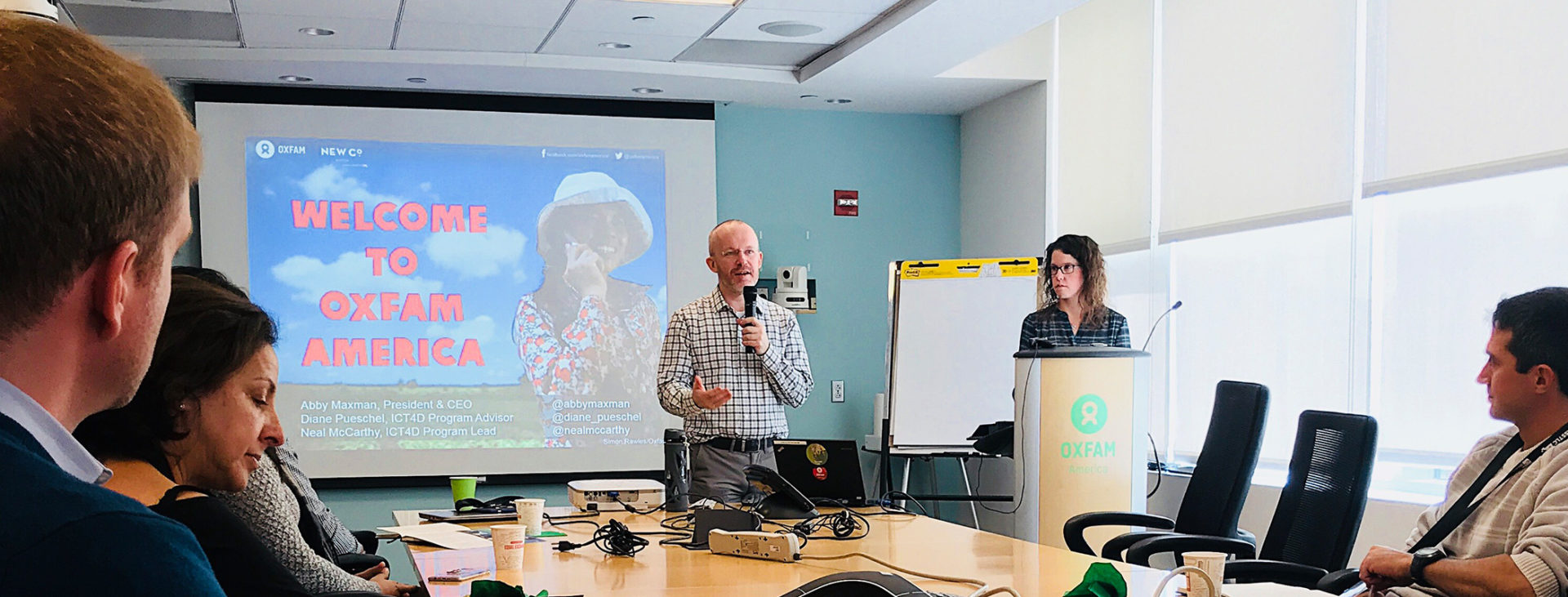 - Oxfam America is a Boston-based global nonprofit working to end poverty. Oxfam President & CEO Abby Maxman and Sr. Manager, ICT4D Neal McCarthy discussed how they incorporate technology and incubator-like approaches into their operation.