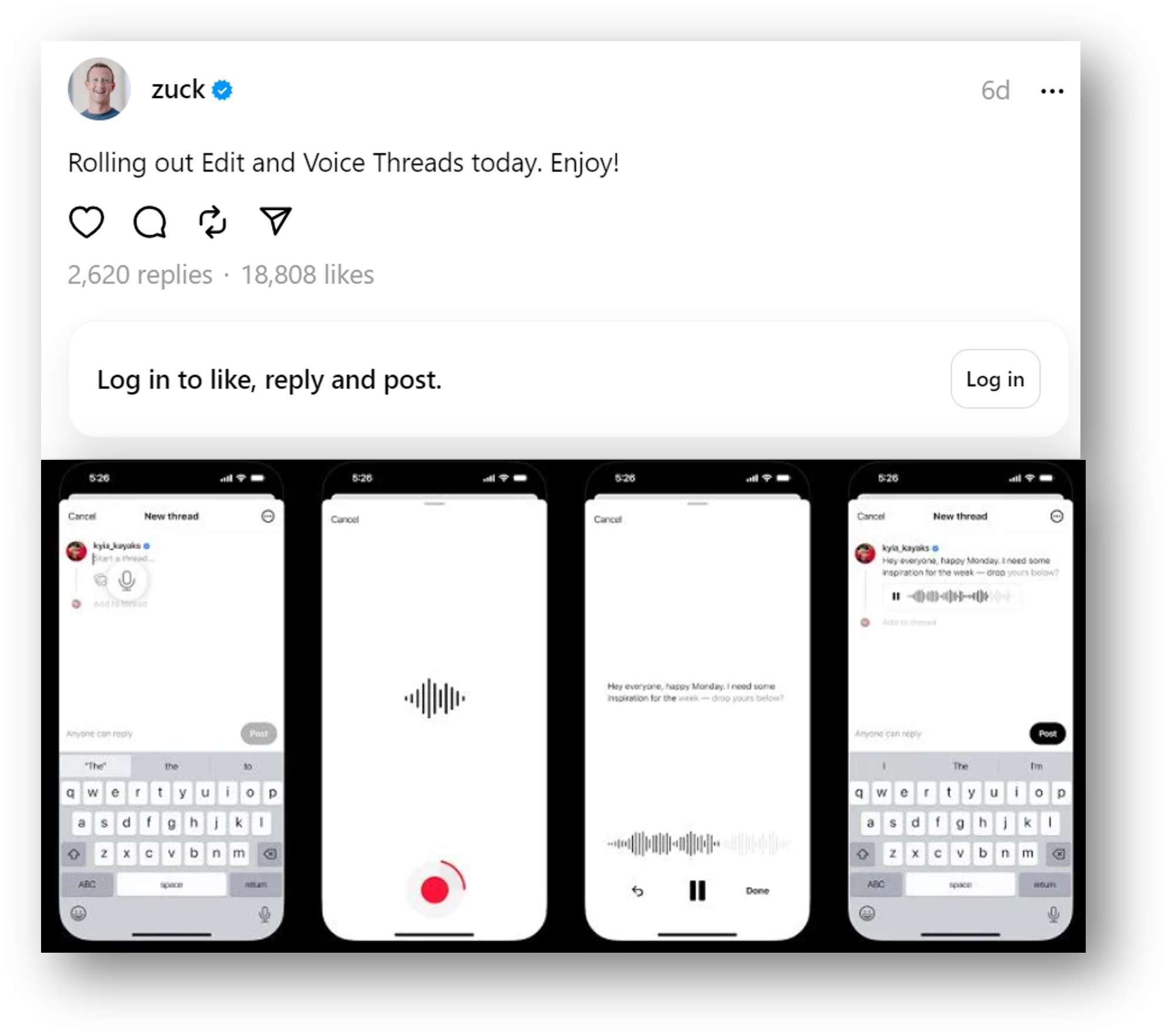 Threads Rolls Out Post Editing + Voice Notes